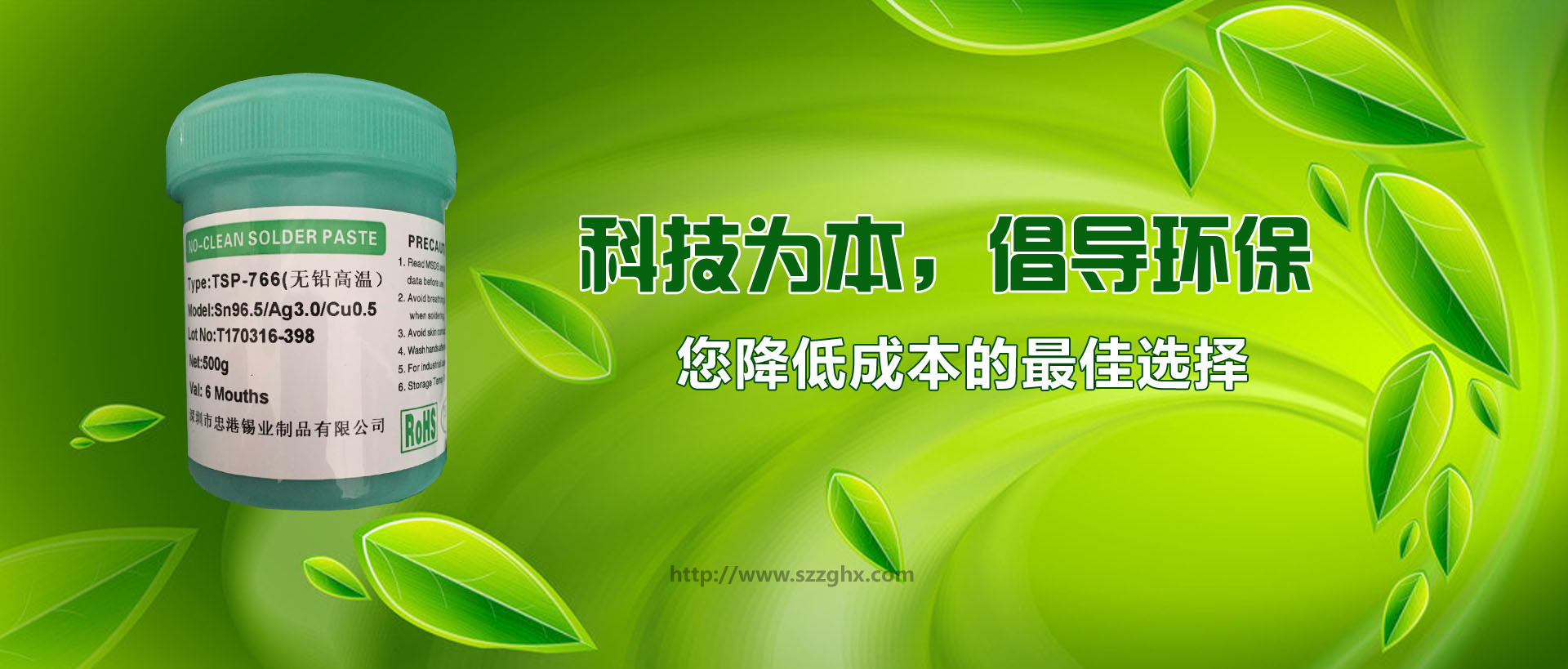 深圳市忠港錫業(yè)制品有限公司以專業(yè)生產、經營各種規(guī)格和用途的無鉛焊錫,環(huán)保焊錫,焊錫絲,焊錫條,焊錫線,焊錫膏,低溫錫線,焊鋁錫絲,不銹鋼焊錫絲,無鉛錫條,無鉛錫絲,無鉛錫膏, 無鉛低溫焊錫絲,無鉛免洗助焊劑,環(huán)保助焊劑,焊鋁助焊劑,焊鋁錫條,水溶性焊錫絲,不銹鋼助焊劑等為主的電子化工輔料企業(yè)。無鉛產品己通過SGS檢測,并獲中國中輕產品[質量、信譽雙保障示范單位]和國際ISO9001:2000質量認證。 自成立以來,以優(yōu)良的產品品質、良好的企業(yè)信譽和開拓進取的企業(yè)精神,建立了良好的社會關系。經過多年的發(fā)展和努力,目前廣州偵探公司已經在國內已建立穩(wěn)固的銷售網絡和系統,贏得了行業(yè)內廣大客戶的贊譽,并倍受用戶信賴,現正成為珠江三角洲地區最具實力的專業(yè)焊錫條、焊錫絲、錫膏、助焊劑制造供應商之一。 |